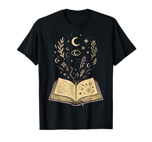 Magic Book for Witches Celestial Moon and Star Symbolic Art T-Shirt