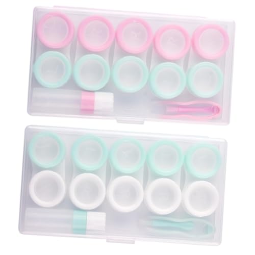PLAFOPE 2 Sets Portable Contact Case with Tweezer and Secure Seal Colored Storage Box for Home and Travel Compact Eye Holder for Easy Access and Safe Carrying
