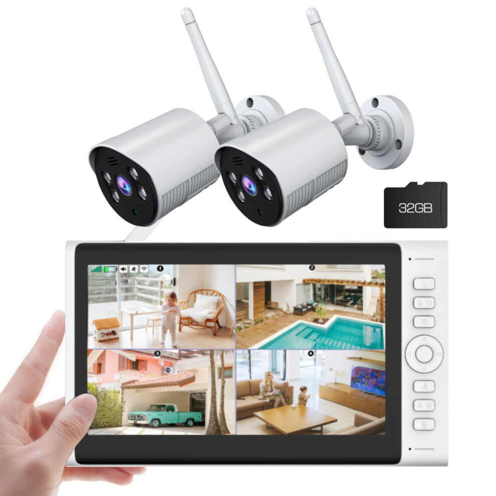 Wireless Security Camera System with 10.1' Monitor, 3MP WiFi CCTV Kit, H.265 Recording, 8CH NVR 2 Cams