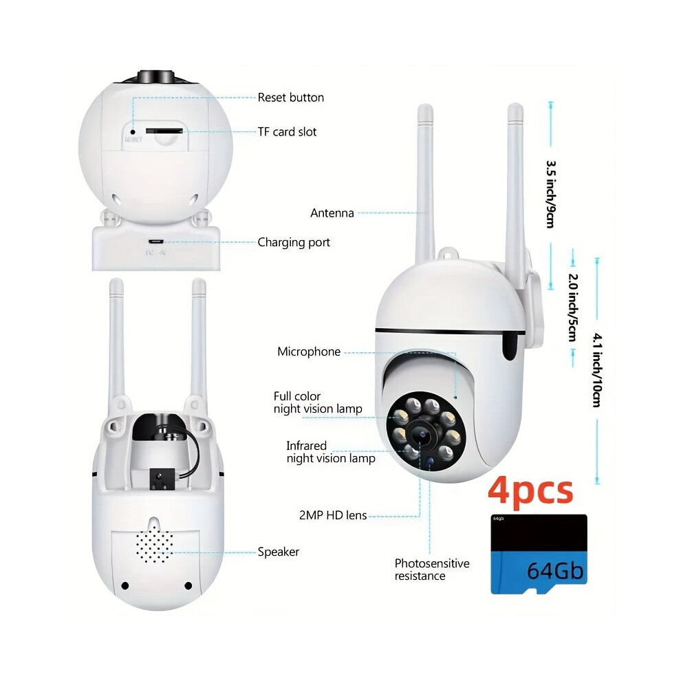 2pcs-4pcs 1080HD Wireless Security Camera System Monitor Your Home And Pets Day And Night With 2.4GWIFI, Night Vision