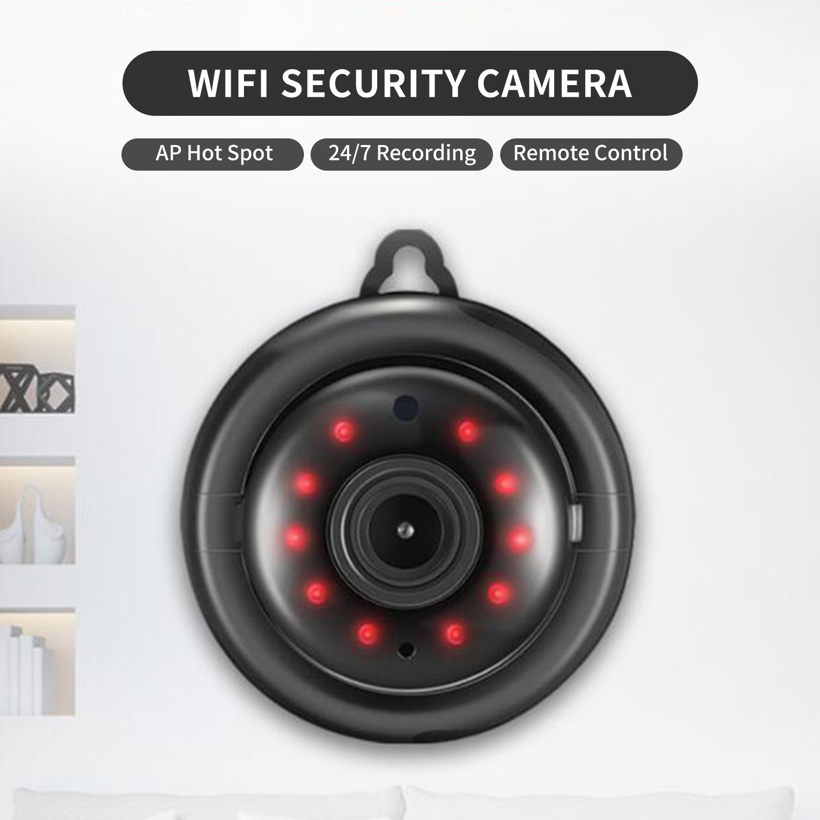 1080P WiFi Home Security Camera with AP Hotspot Support Max 64GB Micro SD Card 24/7 Recording (Not Included) Night Version, Hook Type