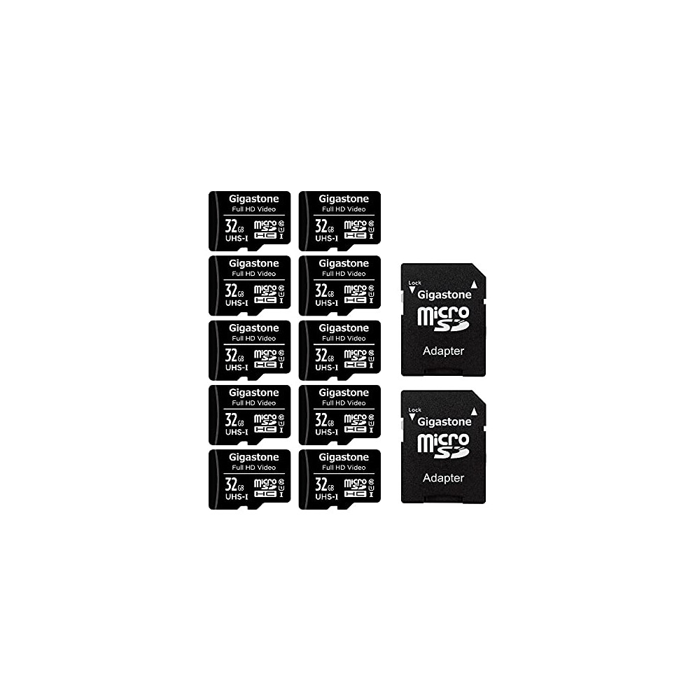 GIGASTONE Micro SD Card 32GB 10-Pack with 2x SD Adapter + 4x Mini-case, Full HD Video, Surveillance Security Cam Action Camera Drone, 90MB/s Micro SDHC UHS-I U1 C10 Class 10