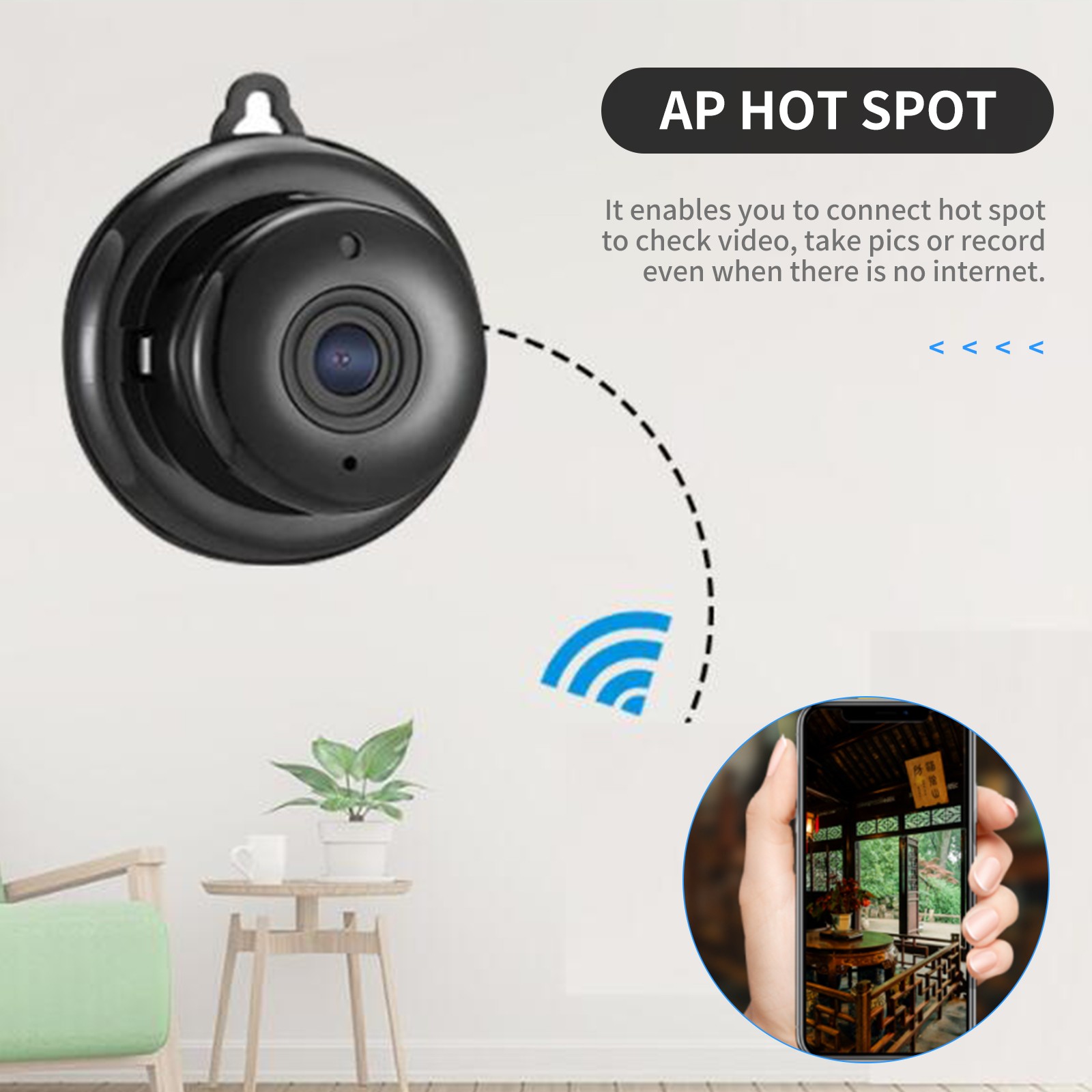 1080P WiFi Home Security Camera With AP Hotspot Support Max 64GB Micro SD Card
