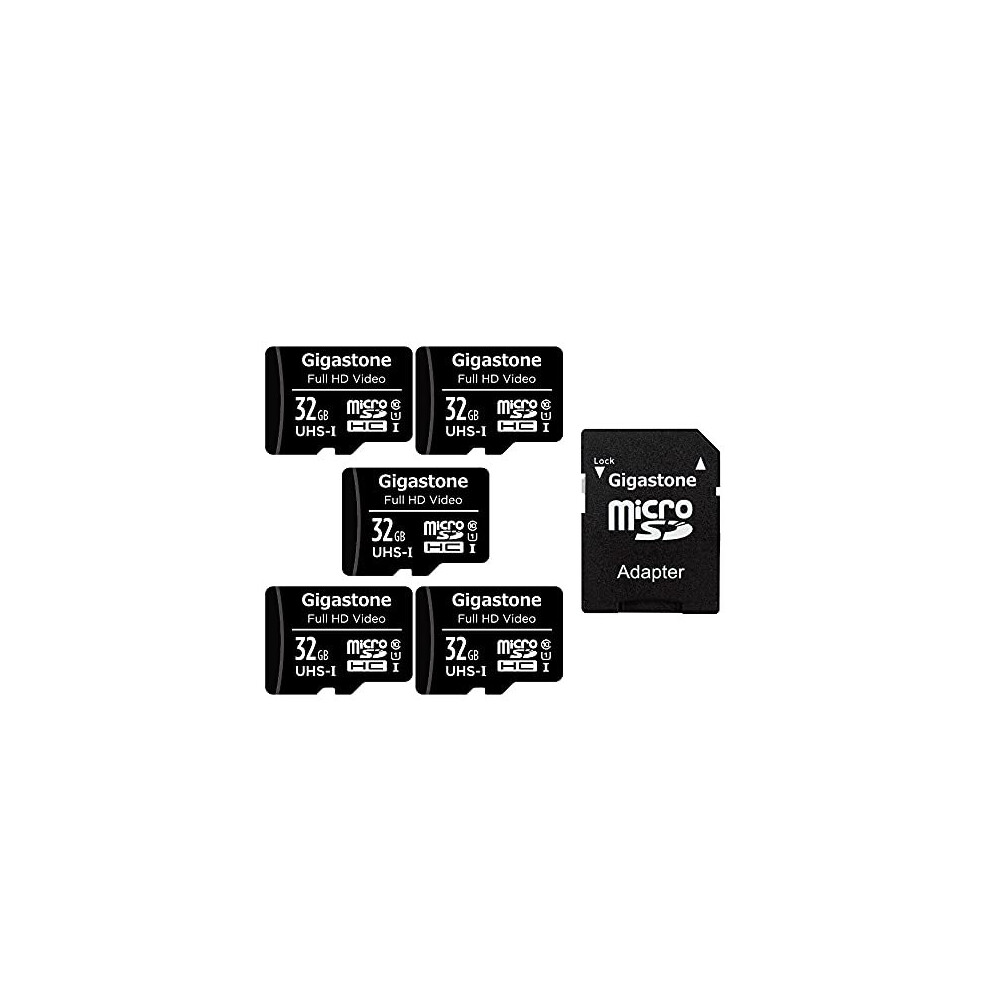 Gigastone Micro SD Card 32GB 5-Pack with 1x SD Adapter + 2x Mini-case, FHD Video, Surveillance Security Cam Action Camera Drone Professional, 90MB/s M