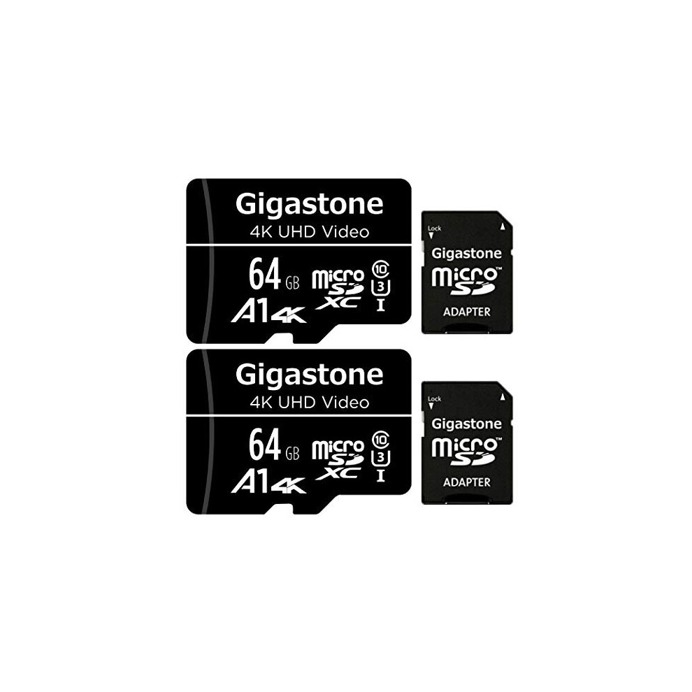 Gigastone Micro SD Card 64GB 2-Pack with 2x SD Adapter + 2x Mini-case, 4K UHD Video, Surveillance Security Cam Action Camera Drone Professional, 90MB/