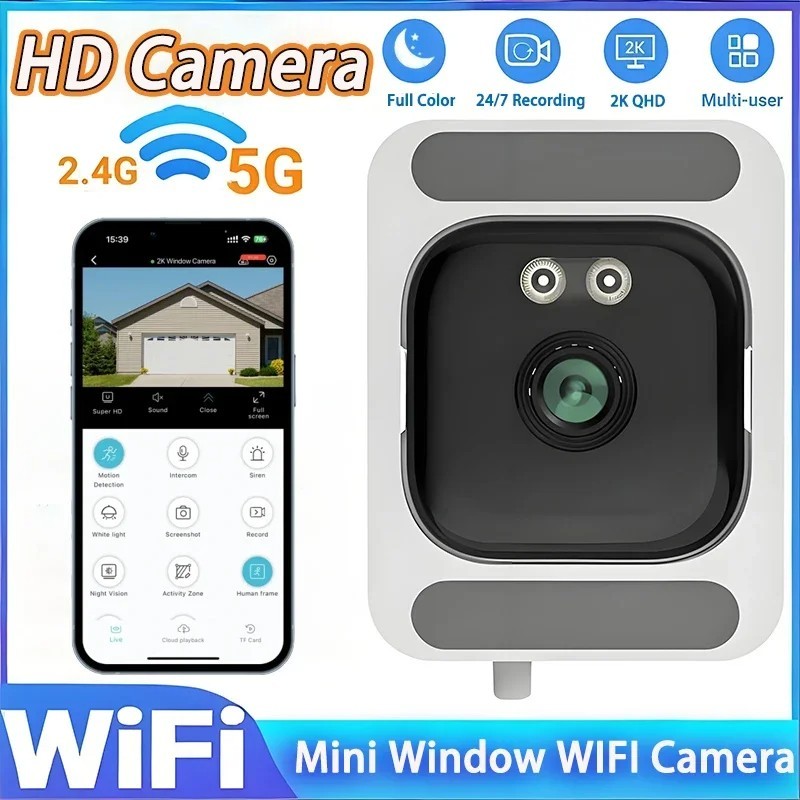 2K Window Security Camera AI Color Night PIR & 2.4G/5G WiFi UK