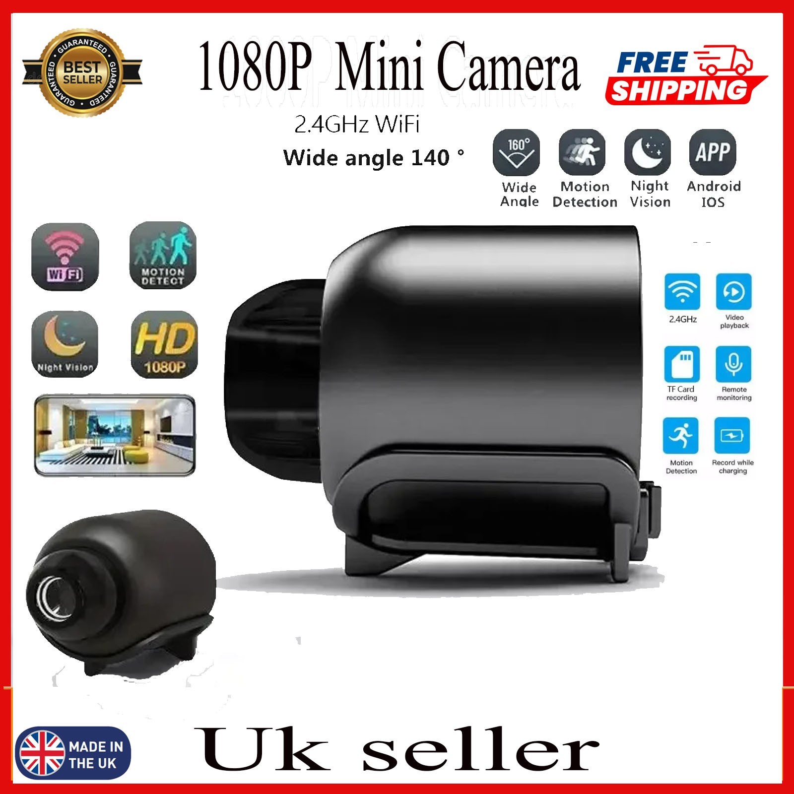 1080P Mini Camera Wireless WiFi Security Surveillance Tiny Cam Night Vision UK.