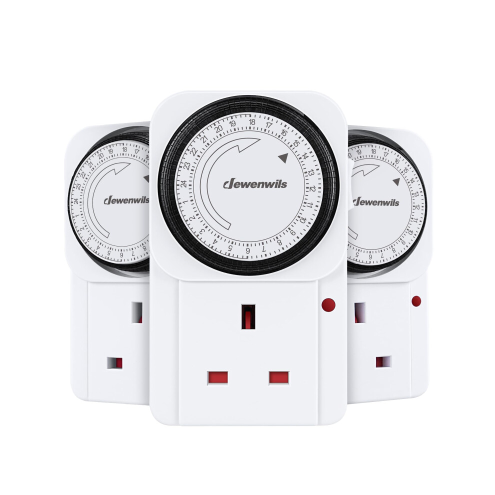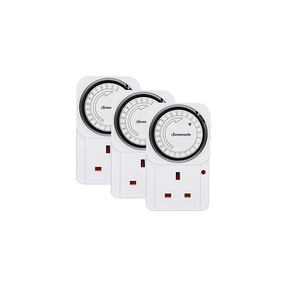 DEWENWILS Timer Plug Socket UK, 24 Hour Programmable Energy Saving Light Timer for Home Security, Lamp, Router Christmas Light, Coffee Machine, Home Appliances (3 Pack)