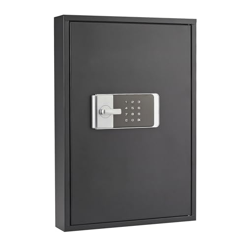safes uk Wall-Mounted Electronic Key Cabinet - Holds 80 Sets | Smart Digital Key Safe with Adjustable Racks Alarm System Multi-Coloured Tags | Key Security Storage Box for Home Office Business