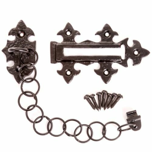 Black Cast Iron CHAIN DOOR GUARD House Home Security Latch Lock Fleur-De-Lys UK