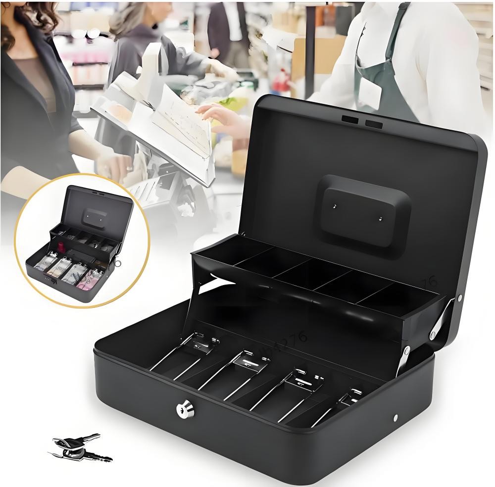 Heavy Duty Metal Locking Cash Money Note Box Safe Security Home Office UK