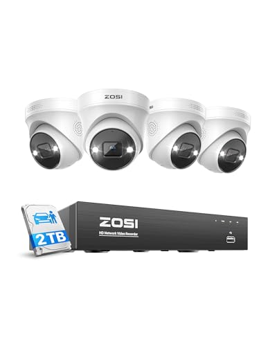 ZOSI 4K POE CCTV Security Camera System,8pcs 4K POE Camera with AI Person Vehicle Detection, 8 Ports 16CH 8MP NVR with 2TB HDD for 24/7 Recording,Color Night Vision, Sound Light Alarm, Two-Way Audio