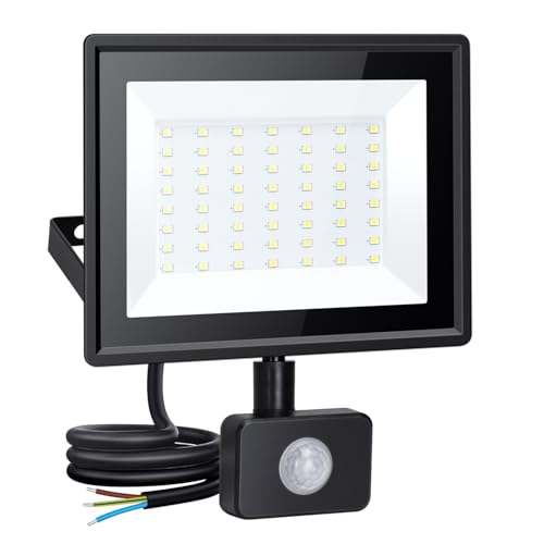 Aigostar Security Lights Outdoor Motion Sensor, 50W PIR Sensor Security Light 4300 Lumens, Super Bright Flood Lights Outdoor, 6500K Flood Light, IP65 Waterproof Floodlight for Backyard, Garden, Patio