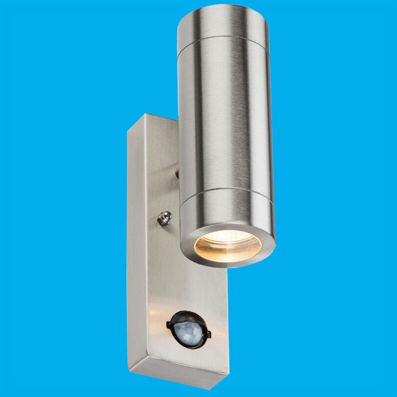 1x Stainless Steel IP44 Up & Down Outdoor PIR Motion Sensor Security Wall Light