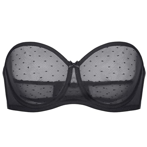 DOBREVA Women's Strapless Bra See Through Sheer Underwired Bras Unlined Plus Size Black 34DD