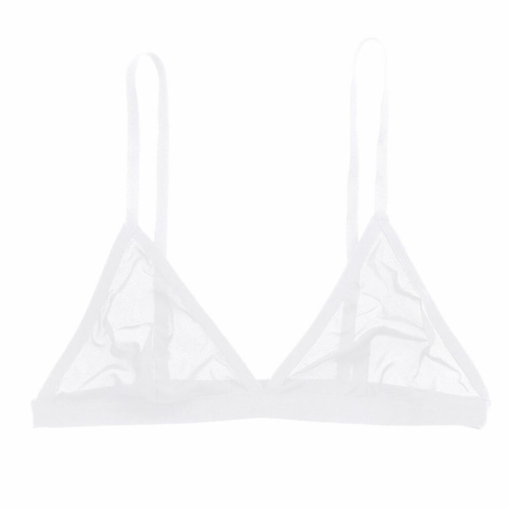 (white, M) Women Sexy See Through Bras Tops Sheer Mesh Triangle Bralette Wirefree Unlined Bra Female Underwear Nightwear