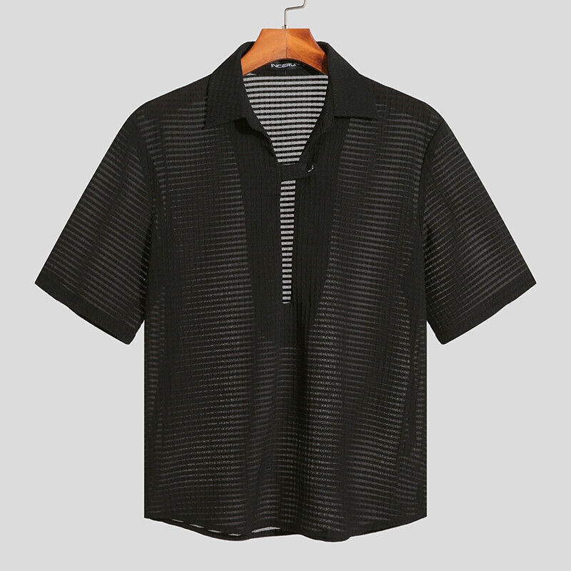 S-5XL Men's Short Sleeve V Neck Shirts Casual See Through T-Shirt Tops Blouse