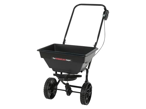 The Workplace Depot 25kg Lawn Spreader – Heavy-Duty Push Broadcast Spreader with Adjustable Flow Rate & Large PVC Hopper – Ideal for Fertiliser, Grass Seed & Grit Salt