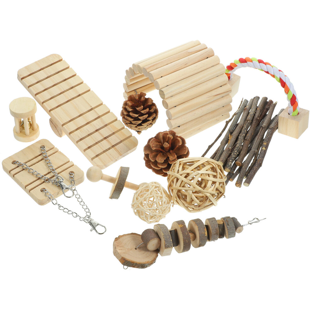 Small Animal Molar Toys Hamster Chew Toys Set Teeth Care Wooden Accessories Fun Swing Seesaw Bridge Natural Molar Tools Entertainment And Exercise Eco