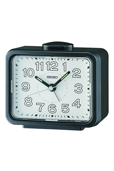 Seiko Mai Bedroom Alarm Clock - Black, Quartz Movement, Quiet Sweep, Beep Alarm w/ Snooze & Light - 3.75x3.7x2 in - QHE184KLH