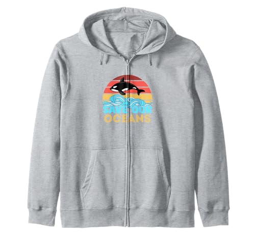 Retro Orca Killer Whale Save The Ocean Marine Biologists Zip Hoodie