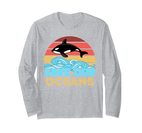 Retro Orca Killer Whale Save The Ocean Marine Biologists Long Sleeve T-Shirt