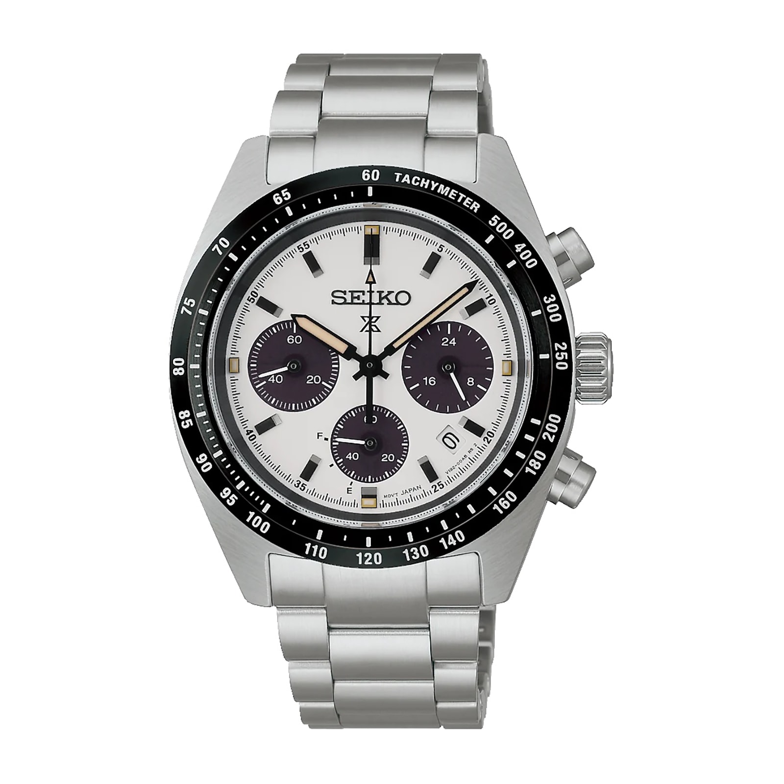 Seiko Speedtimer Solar Chronograph Watch for Mens, Silver/White, Bracelet