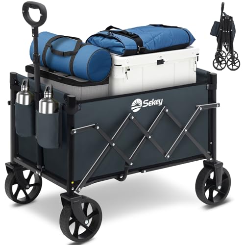 Sekey 220LBS Folding Festival Trolley on Wheels, Heavy Duty Camping trolley with All-Terrain Wheels, Portable Beach wagon, Adjustable Handle, Space-Saving Cart for Shopping Outdoor - Grey
