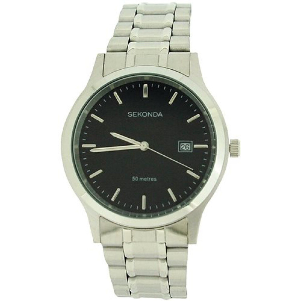 Sekonda Gents Analogue Quartz Watch with Black Dial and Silver Stainless Steel Bracelet 1930