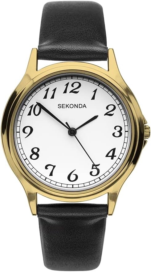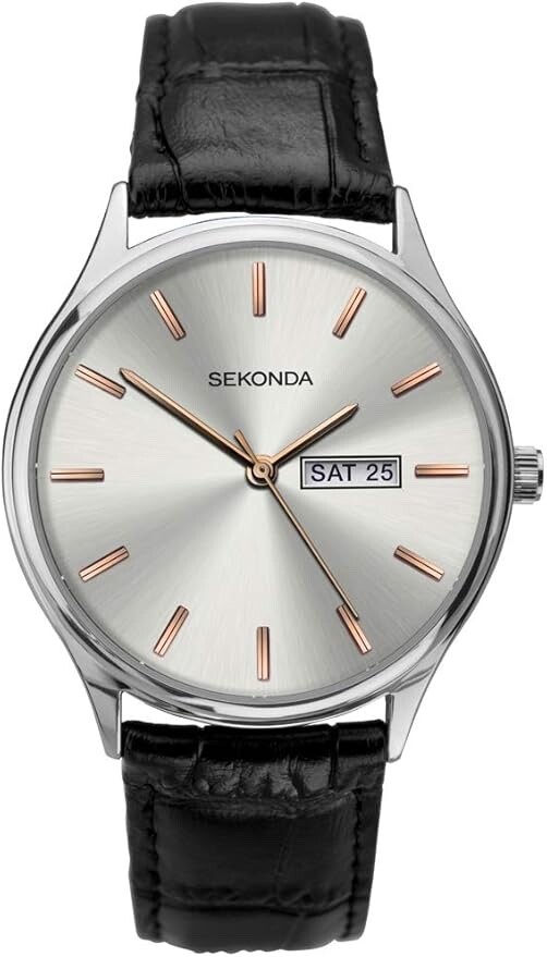 SEKONDA gents watch Mens Black Leather Strap Easy Read 3621 RRP £29.99