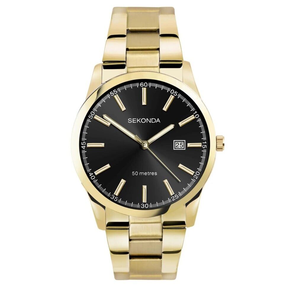 Sekonda Gents Classic Gold Tone Watch Black/Grey Dial Date 30008 RRP £64.99