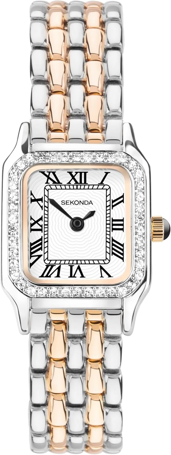 Sekonda Monica Ladies 20mm Quartz Watch in White Sparkle Rose Gold, Two Tone