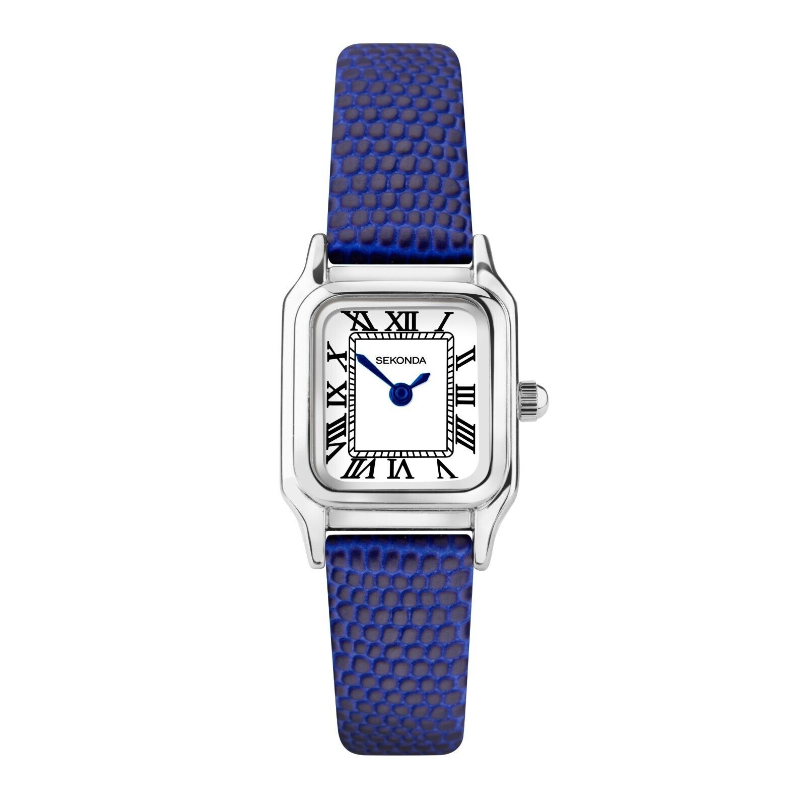 Sekonda Monica Ladies 20mm Quartz Watch in White with Analogue Display, and Blue Leather Strap 40293
