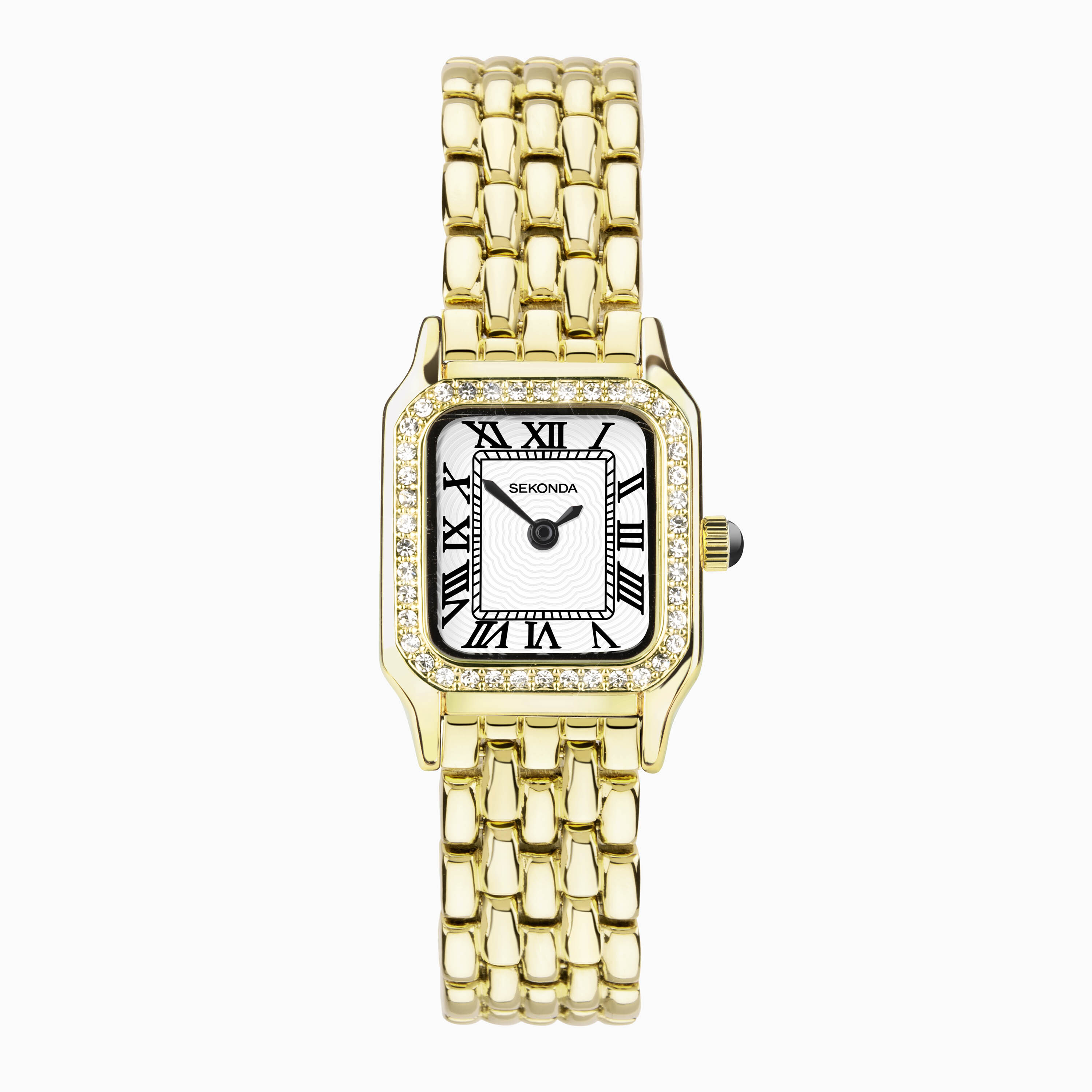 Sekonda Sekonda Monica Ladies Watch | Gold Alloy Case & Bracelet with Stone Set Bezel & White Dial | 40642