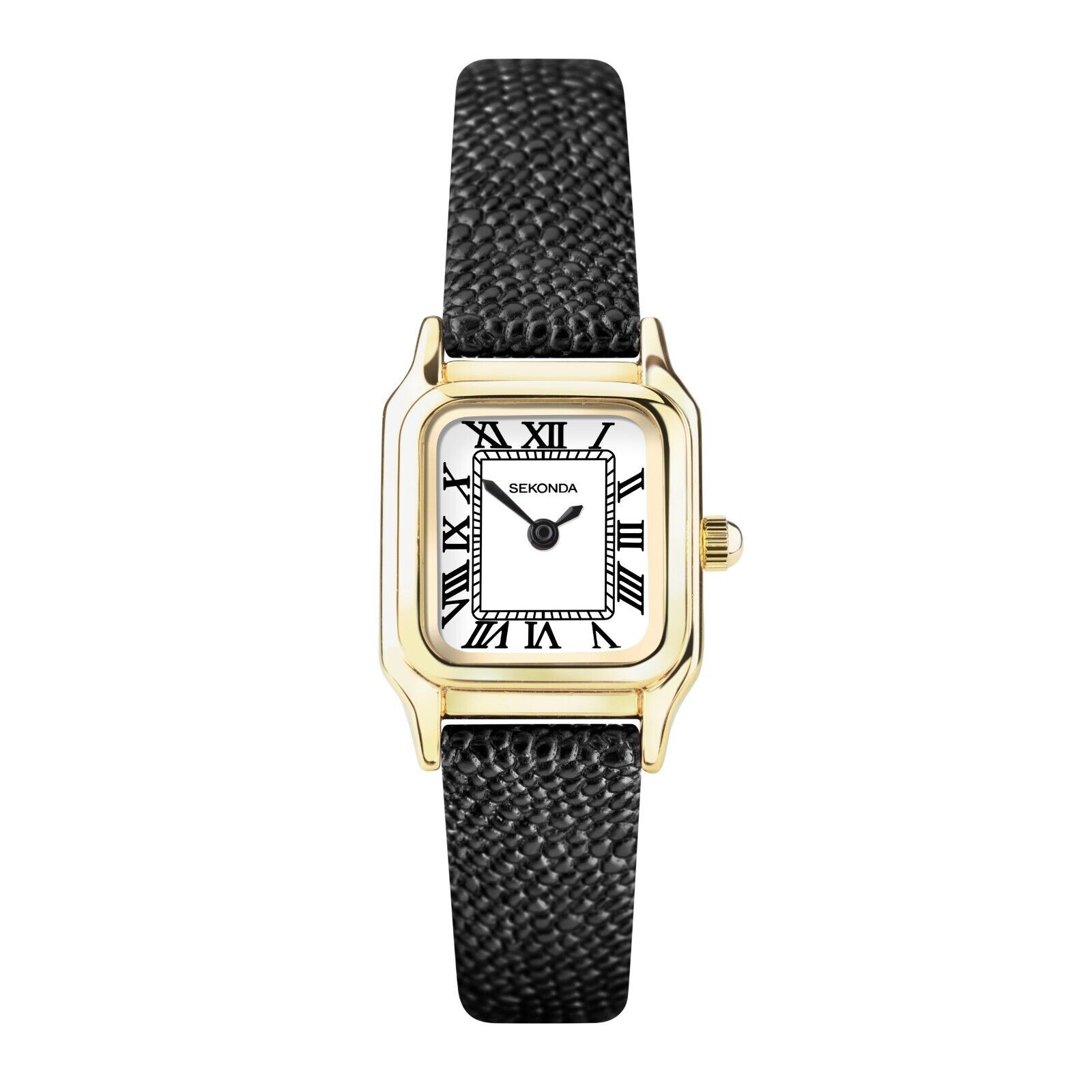 Sekonda Sekonda Monica Ladies Watch | Gold Alloy Case & Black Leather Strap with White Dial | 40557