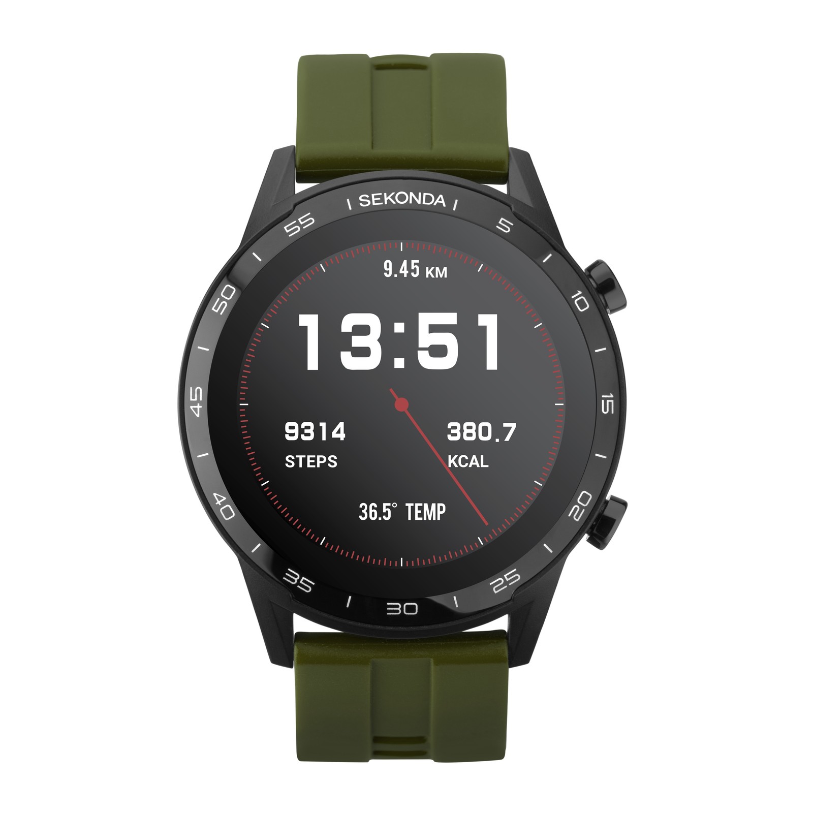 Sekonda Active 46mm Mens Round Black Smartwatch Watch with Khaki Strap