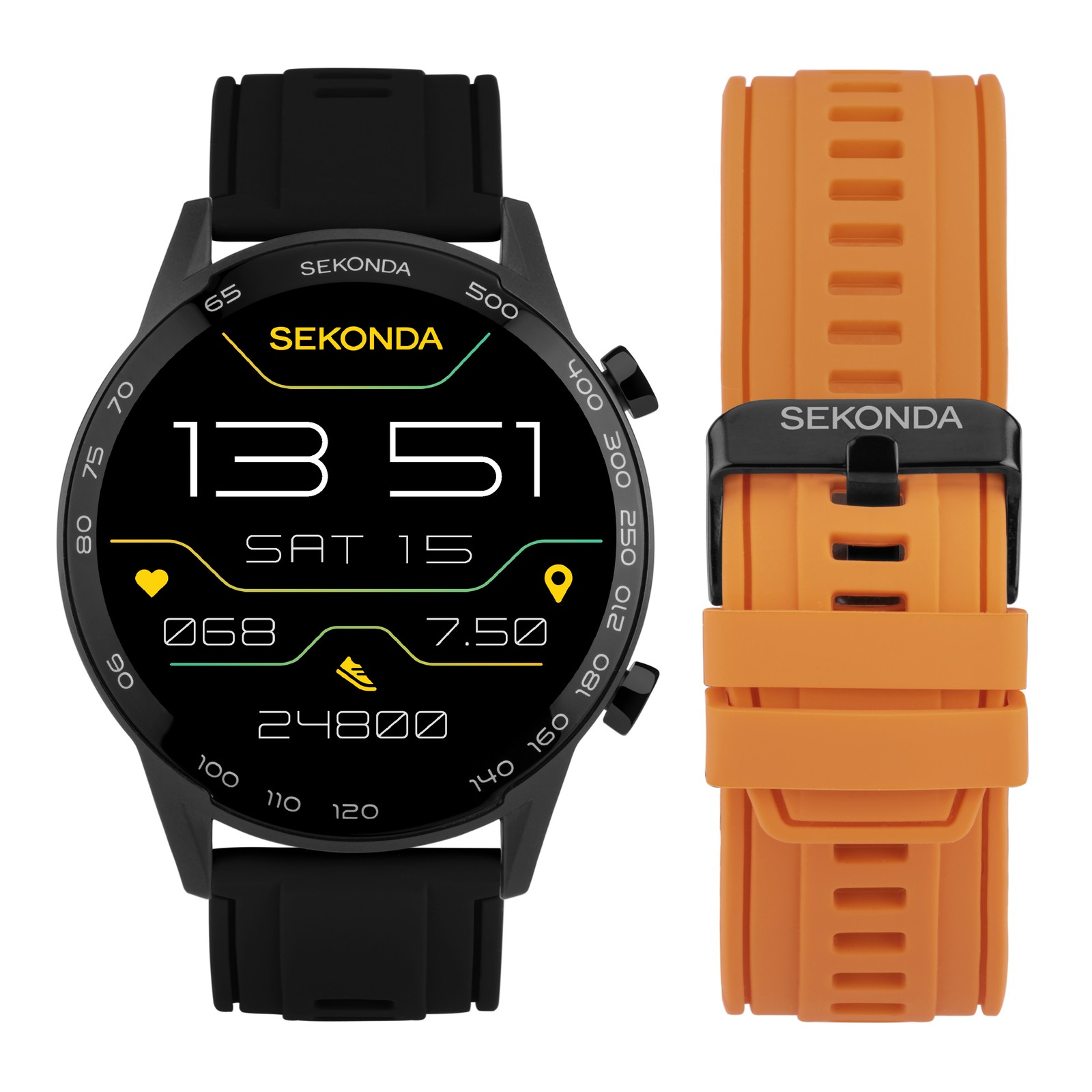 Sekonda Active Plus 45mm Mens Smartwatch Gift Set with Two Straps Black + Orange