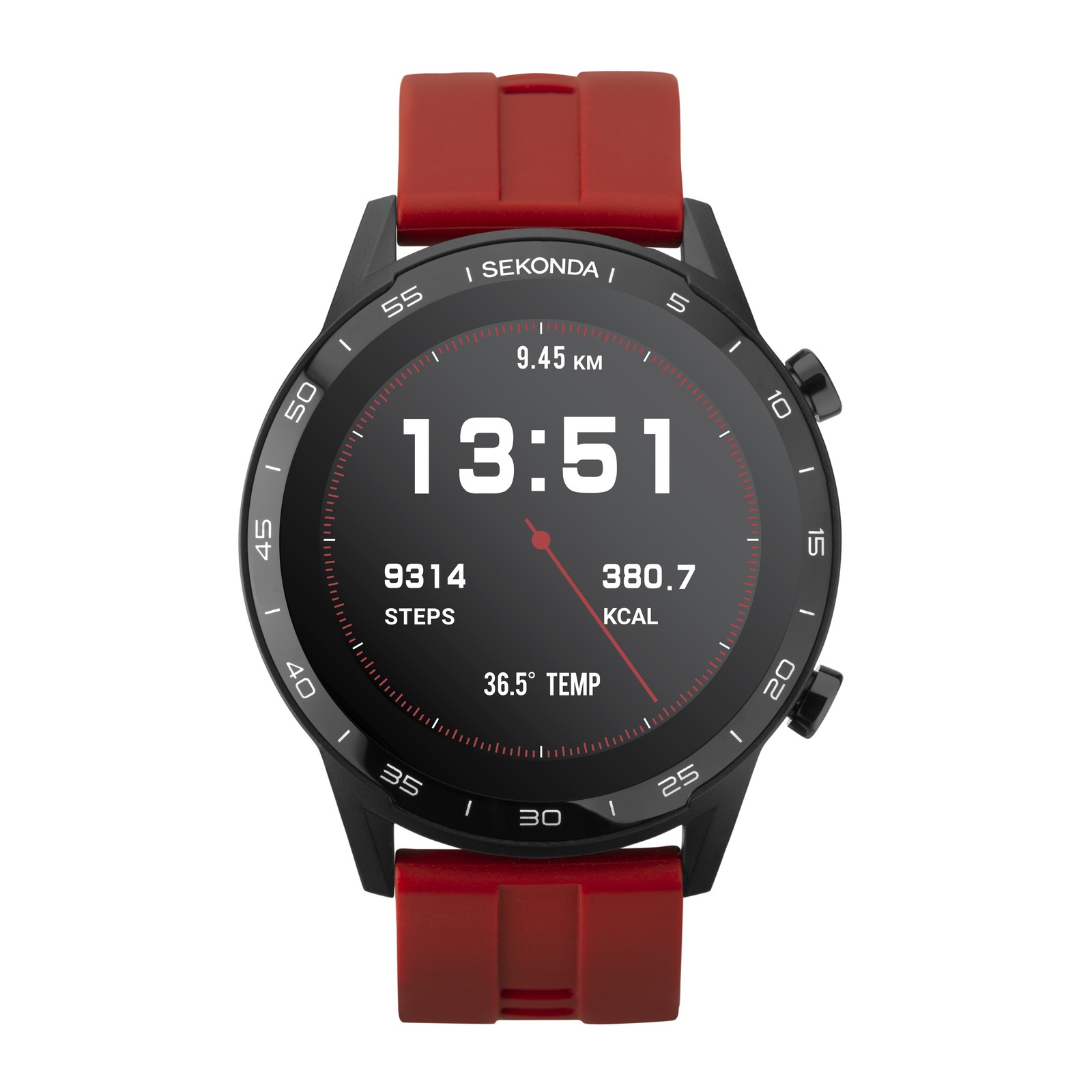 Sekonda Active 46mm Mens Round Black Smartwatch Watch with Red Strap