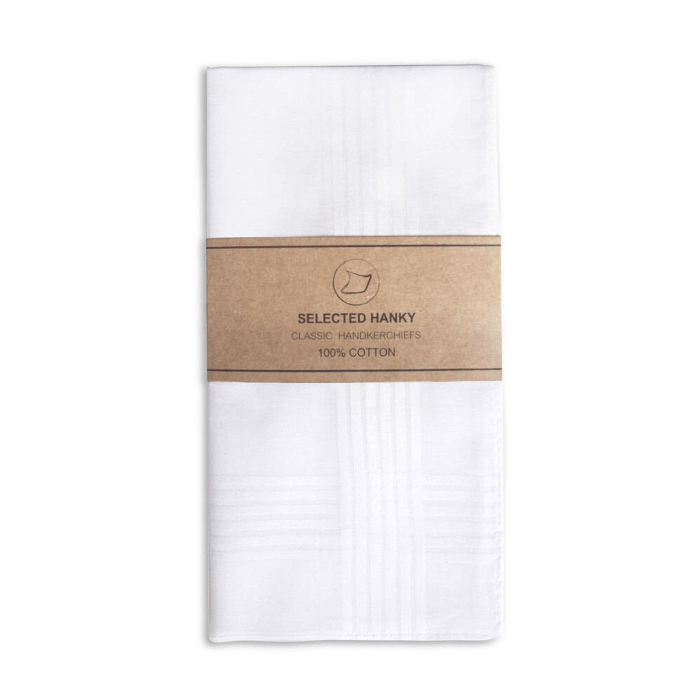Selected Hanky Men's Handkerchiefs 100% Soft Cotton White Classic Hankie Pack of 12