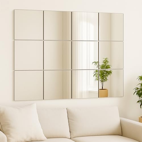 Sqinor Self Adhesive Mirror Tiles Glass Square Stick On Full Length Long Wall Mirrors for Living Room Bedroom Hallway Walls (30x30cm, 4pcs)