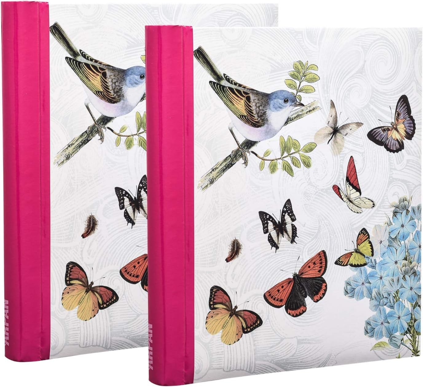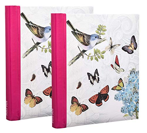 Arpan 2 Pack of Photo Albums Self Adhesive Large Picture Book Modern Style Wiro Binder In Black/Blue/Red/Vintage Birds/Butterfly (Purple/Pink)