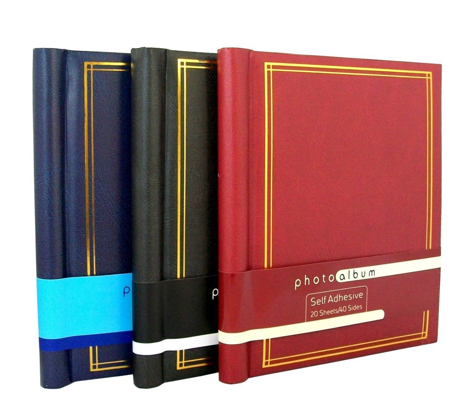 Self-Adhesive Photo Albums with 20 Sheets/40 Sides each, Black/Red/Blue, Large, Pack of 3