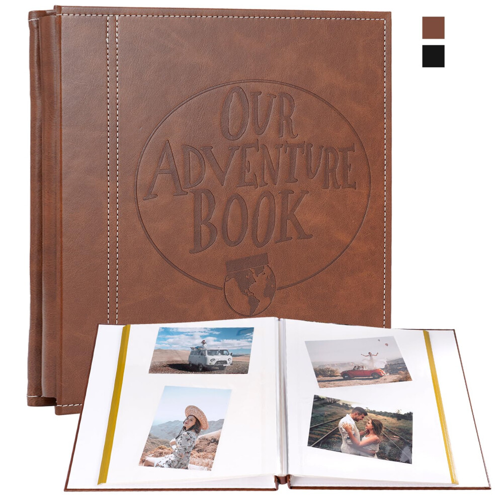 Self Adhesive Large Photo Albums 40 pages, Our Adventure Book Leather Hardcover Wedding Album, Personalised Photo Scrapbook for Anniversary, Holds 3X5, 4X6, 6X8, 8X10 Photos, Brown