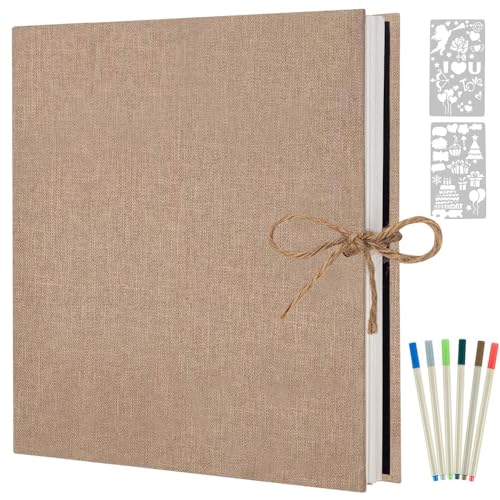 Lanpn Self Adhesive Photo Album Scrapbook 80 Pages, Linen Photos Albums DIY Sticky Magnetic Pages holds 6x4 7x5 A4 A5 Picture for Family Wedding Birthday (Large-40 Sheets/80 Pages, Beige)