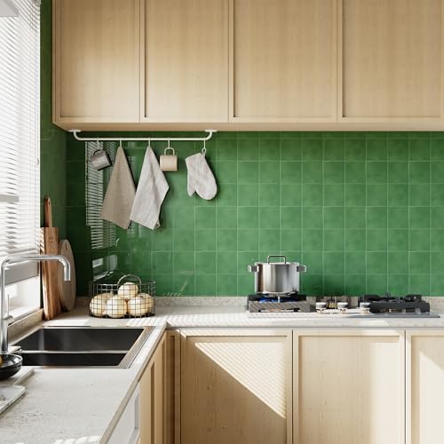 Yoillione Peel and Stick Tiles Kitchen: Self Adhesive Tiles Stickers for Walls - 10 Sheets Waterproof Thick Green Large Splashback for Bathroom