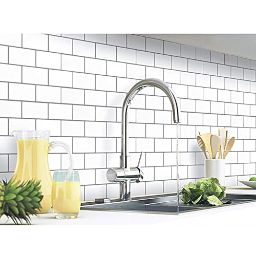 Yoillione Peel and Stick Tiles Kitchen: Self Adhesive Tiles Stickers for Walls - 10 Sheet White Splashback for Bathroom