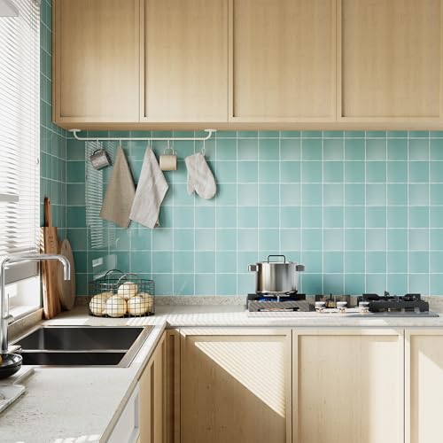 Yoillione Peel and Stick Tiles Kitchen: Self Adhesive Tiles Stickers for Walls - 10 Sheets Waterproof Thick Light Blue Large Splashback for Bathroom