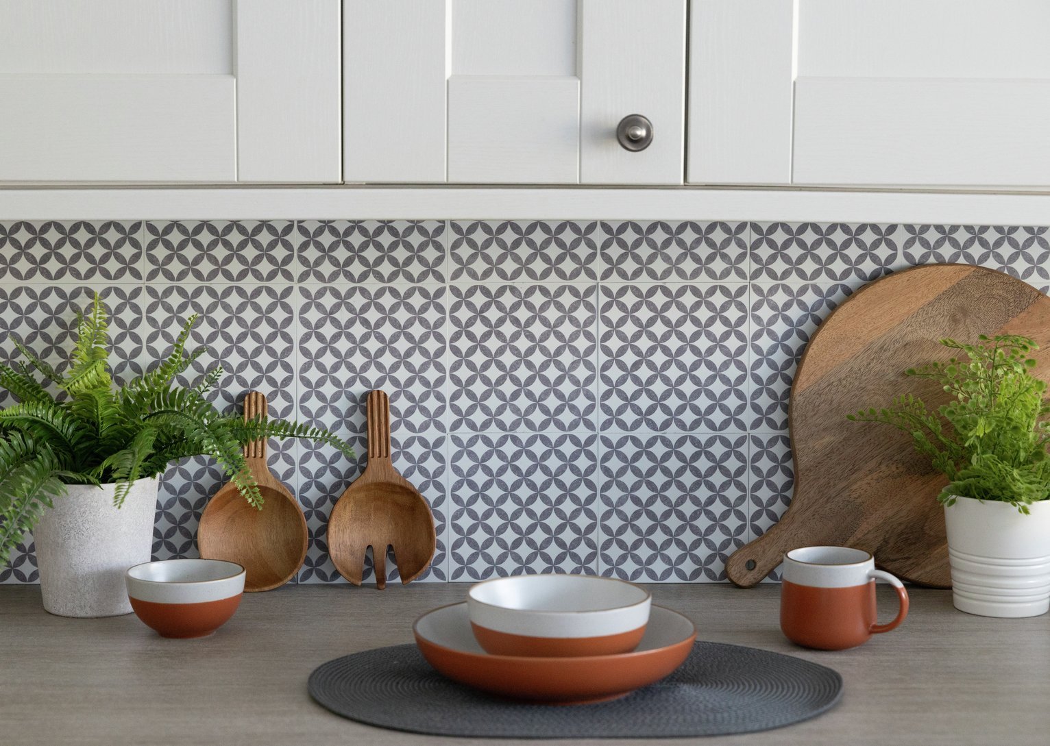 Smart Tiles Stick On Tiles Splashback - Morocco Grey/White, Self Adhesive Wall Tiles, 5 Wall Panels 11.43x9 in, Heat Resistant Adhesive Wallpaper Tile, Water Resistant Bathroom Tile, Made in Canada