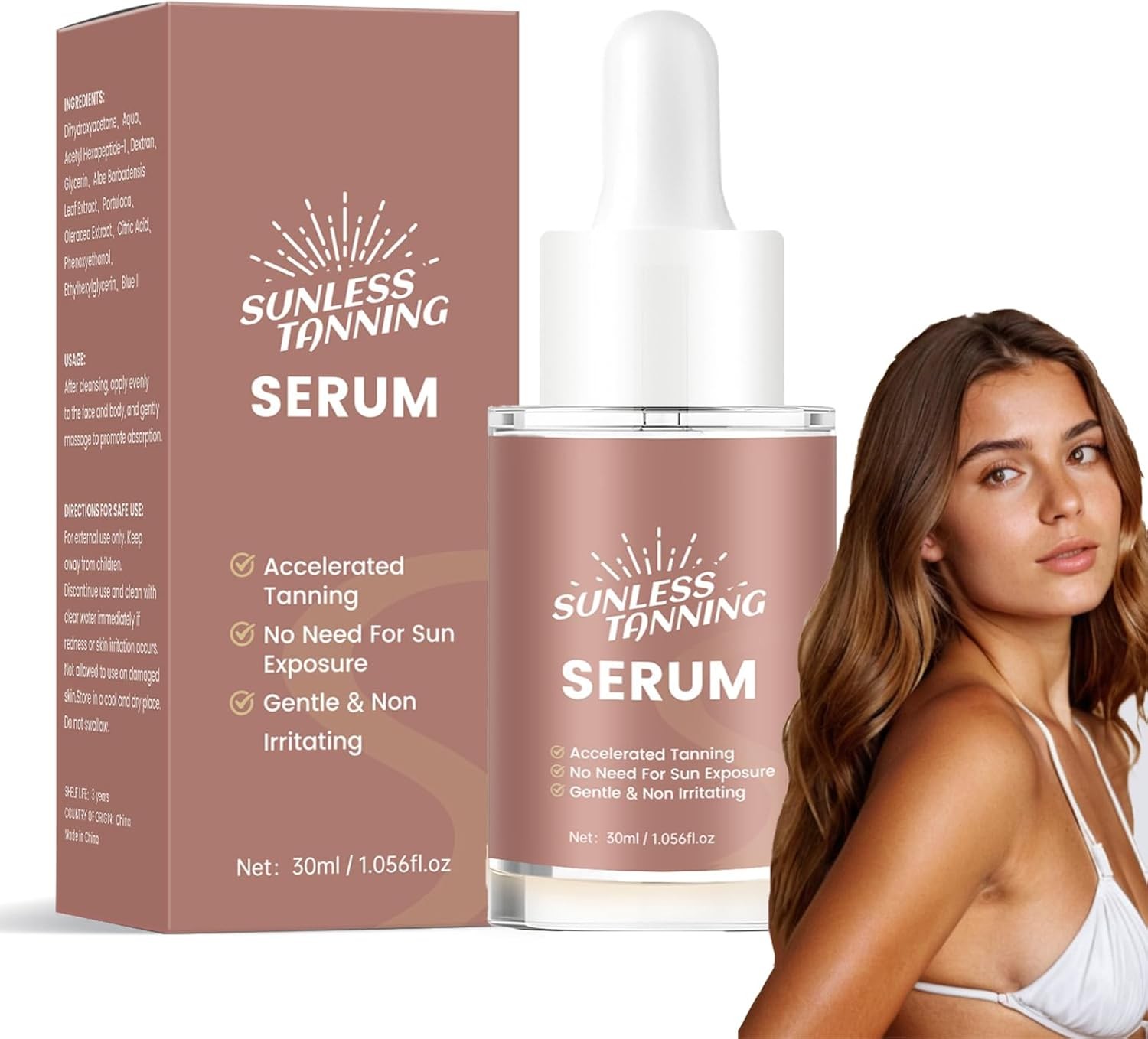 Sunless Tanning Drops, Self Tanning Booster for Face & Body, Naturally Boosts Melanin, Enhances Natural Glow, Gradual Bronzing Effect, No Sun Damage, Hydrating Formula, For All Skin Types (1 Pcs)
