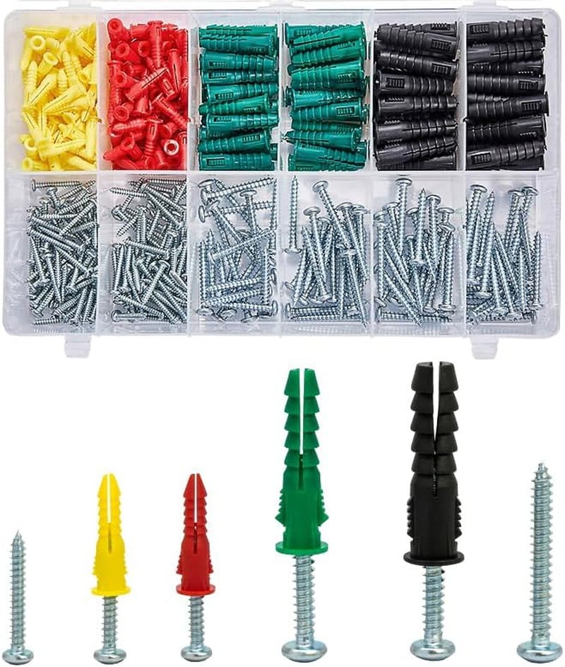360 Pcs Plasterboard Screws and Wall Plugs and Nails Set,Assorted Masonry Brick Concrete Wall Plasterboard Fixings, Self Tapping Drilling Wood Raw Anchor Plugs and Screws and Nails Assortment Kit